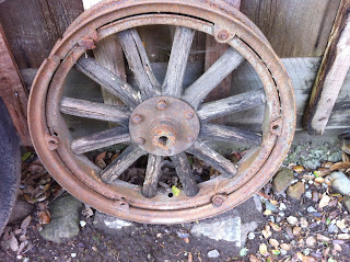 You just don't see many like this anymore. My father talked about his father having wheels like this on their touring car while traveling from Texas to California. There were no paved roads between Texas and California except in large cities. He said going across the desert they broke a spoke on a wooden wheel and put the spare wheel on. So they had spare tubes so they wouldn't get stuck without a tire and a tire pump and an extra wooden wheel in case a rut in the road broke the wheel or too big a rock or a combination broke the wheel or punctured a tire. When it rained it wasn't usually a good idea to travel unless you were on a graveled or rocked road because you would get stuck. This was about 1915 and probably before to 1925 when my Grandfather rode on Wood spoke wheels. Somewhere around Arizona they broke a front spoke wheel so my Grandad stopped to put a new wheel on that was tied onto the trunk of the car. The dogs rode on the running boards (they tied them on) so they wouldn't mess in the car back then because they were outdoor dogs and mostly to hunt with so were not housebroken. My Uncle was 4 years old and went and stood over on a large red ant hill and his screams when they bit him all over drew everyone to save him. Where they lived in Oregon and Washington and Texas I don't think they had the large red ants that will attack humans sort of like bees if you are near their hives. I myself, when I was 4 had this same experience in El Cajon, near San Diego, because they didn't have ants like this in Seattle where I had come from either. It is so painful that it only takes one time to learn the lesson of the large red ants of California and Arizona and possible a couple of other areas as well. My father said that the alkali dust roads were so bad that only the driver wasn't crying from eye irratation and it also created sores in your mouth from the dust that it took about a month for all the sores in your mouth to heal from all the dust. Only the driver, my Granda who had goggles on didn't have eyes watering from the alkali roads. And everyone had the mouth sores for over a month after they reached California likely in the early 1920s. I found this wood spoke wheel in Big Sur on the coast of California next to the rest room. It is near the Shell Station($5.99 a gallon for premium) today in between the River Inn and the Post Ranch and Ventana Ranch. If you want to see more wooden spoke wheels go to google images and type in: 'Wooden Spoke wheels'.